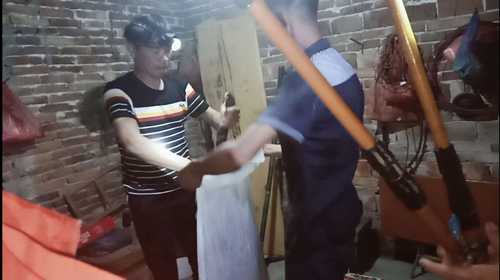 接到報警后,宜章縣森林公安局團結(jié)林業(yè)派出所、宜章縣公安局一六派出所民警、宜章縣一六鎮(zhèn)黨委政府工作人員迅速趕往現(xiàn)場。民警發(fā)現(xiàn),一條大約3米的大蛇盤踞在村民家中,經(jīng)現(xiàn)場確認,其為劇毒眼鏡王蛇。為了保護村民的生命財產(chǎn)安全,民警迅速在該村民家附近拉起警戒線,進行抓捕活動。由于地形復雜,房間雜物眾多,情急之下,民警用棉被堵住出口,在房間灌水后,趁機用電打魚機將蛇打暈。