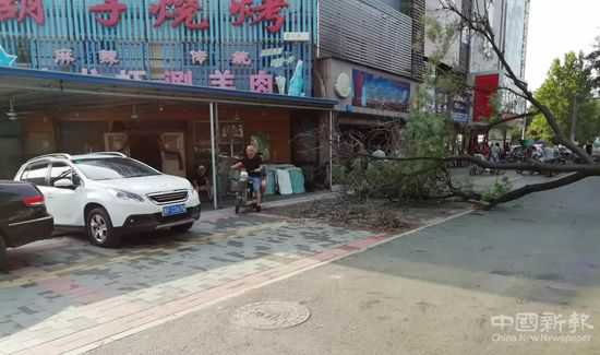 河北保定:大風刮倒大槐樹 市民希望盡快清除路障