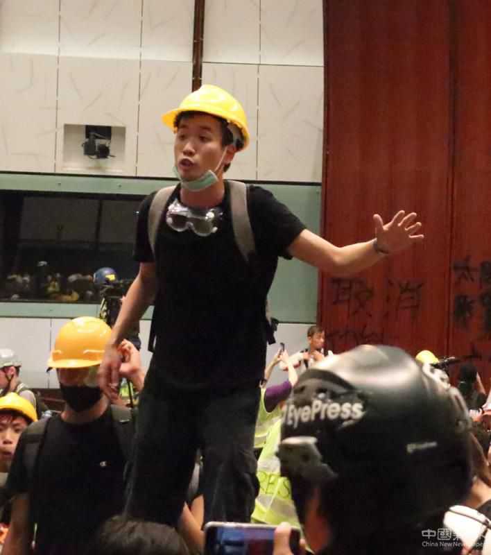 圖:煽動(dòng)眾人留下占領(lǐng)立會(huì)的男子疑是港大《學(xué)院》前總編輯梁繼平/大公報(bào)記者攝