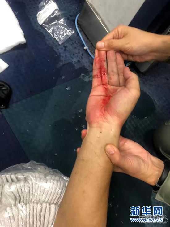圖為受傷警察的手(8月11日攝)。新華社發(fā)