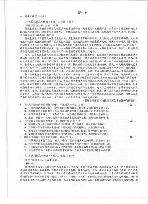語文真題及答案