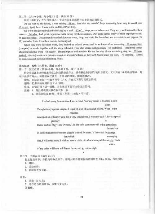 英語真題及答案