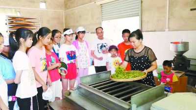 孩子們觀看茶葉炒制