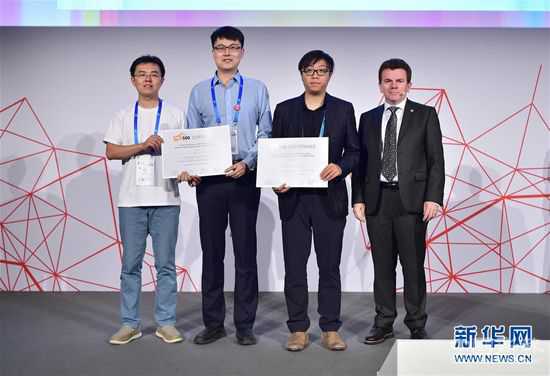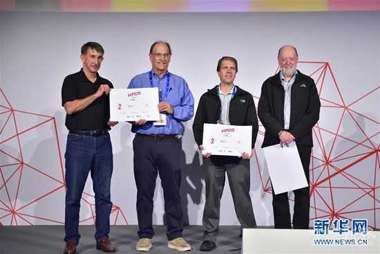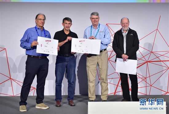 6月17日,在德國(guó)法蘭克福,美國(guó)能源部下屬橡樹(shù)嶺國(guó)家實(shí)驗(yàn)室開(kāi)發(fā)的“頂點(diǎn)”團(tuán)隊(duì)代表上臺(tái)領(lǐng)取證書(shū)。 新一期全球超級(jí)計(jì)算機(jī)500強(qiáng)榜單17日面世,中國(guó)超算上榜數(shù)量蟬聯(lián)第一,美國(guó)超算“頂點(diǎn)”仍是運(yùn)算速度冠軍。新榜單還有一大看點(diǎn)是史上首次所有上榜超算的速度都突破了每秒千萬(wàn)億次。 新華社記者 逯陽(yáng) 攝