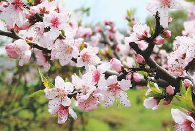 齊身高的桃枝上,繁如群星般地開滿了花蕾,千姿百態(tài),惹人喜愛。有的含苞待放,半露半藏,羞羞答答;有的迎風(fēng)初綻,紅艷欲滴,亭亭玉立;有的天真爛漫,俏皮可愛;有的花枝招展,神采飛揚(yáng)。幾只粉蝶翩翩起舞,數(shù)只蜜蜂飛來飛去,和我們共享這大自然賜予的美麗景色。