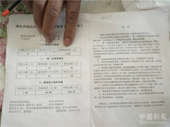中國新報訊(記者 孫運曉)近日,湖北荊州區(qū)李埠鎮(zhèn)白荷村村民向記者反映,拆遷工作征收村民土地,卻得不到補償,而白荷村2013年村委開會決定,拆遷補償只針對1983年第一輪承包土地村民,那么1996年第二輪承包土地村民,不享受拆遷補償,這是什么原因?以村民王先生為例,蓋有荊州區(qū)李埠鎮(zhèn)財政管理所公章的“湖北省農民負擔及補償政策監(jiān)督卡”上面標有農民二輪延包或農工責任田面積6.4畝,而2018年度“監(jiān)督卡”卻顯示土地確權面積0畝,而這些承包土地村民都有蓋有政府印證的土地承包經營權證,土地承包經營權為何就這樣消失了?