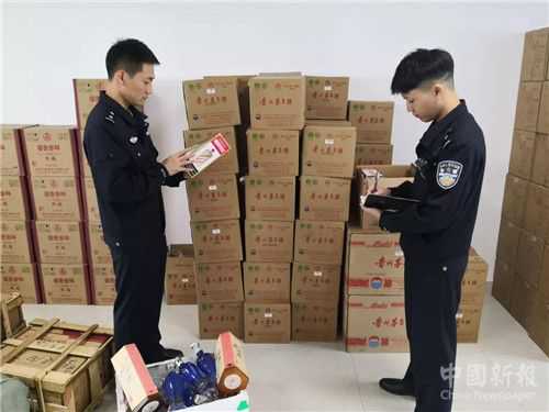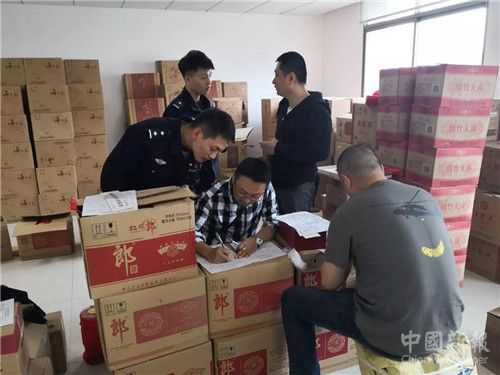 警方對(duì)收繳的假酒進(jìn)行核實(shí)
