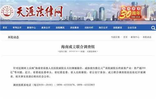 5月13日,海南省委政法委表示,牽頭組成聯(lián)合調(diào)查組,調(diào)查該問(wèn)題。5月14日,海南省高級(jí)人民法院表示,堅(jiān)決擁護(hù)省委決定,支持配合調(diào)查組查清事實(shí),回應(yīng)社會(huì)關(guān)切。