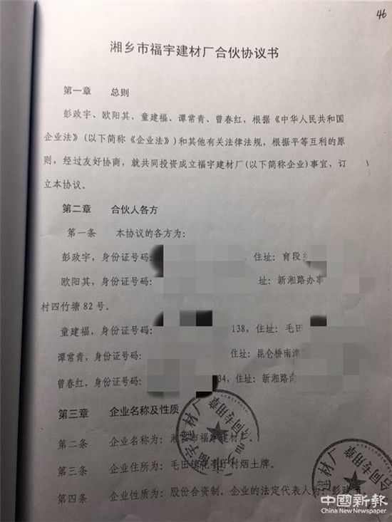 令人意想不到的是,彭政宇不僅拒絕支付承包款,一年之后,還將廠子以租金抵債務的方式租賃給了別人。目前,福宇建材廠幾經(jīng)更名,現(xiàn)已掛牌湘鄉(xiāng)市仨匠新型建材科技有限公司,法人代表也更換了。讓他想不通的是,明明是幾個合伙人一起投資入股創(chuàng)辦的磚廠,并有合伙協(xié)議書作為物證,為何磚廠現(xiàn)在卻成為了別人的囊中物?這件事令譚常青十分慪火,并困擾了他數(shù)年,“我只想要回自己的磚廠。”譚常青說。