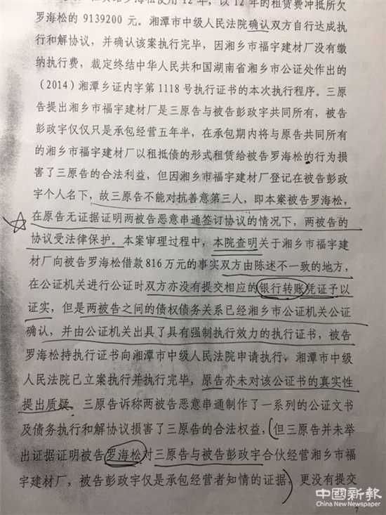 譚常青認為,彭政宇的借款跟磚廠其他股東沒有任何關(guān)系,是股東譚常青等人先建磚廠投產(chǎn)后承包給彭政宇的。彭政宇與羅海松串通做不合邏輯公證借羅海松巨款,其目的就是轉(zhuǎn)移財產(chǎn),(就算是真有這么一筆巨額借款,也與其他股東無關(guān),屬彭政宇個人行為)屬于典型的職務侵占。本報還將繼續(xù)關(guān)注此事。
