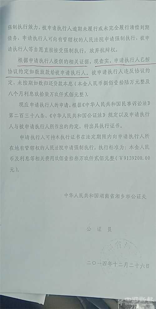 記者下午隨后來到湘鄉(xiāng)市司法局公證處,一名工作人員告訴記者,該公證本著雙方事實為依據(jù),公證時公證書并沒有錯誤,也不需要了解該廠背后經(jīng)濟合作情況,這是隱形的東西。