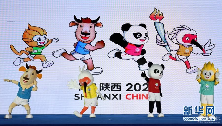 8月2日,第十四屆全運會會徽“禮天玉璧”和吉祥物“秦嶺四寶”在西安明城墻南門廣場正式亮相。第十四屆全運會將于2021年在陜西省舉行。 這是第十四屆全運會吉祥物“秦嶺四寶”卡通設(shè)計形象。 新華社發(fā)