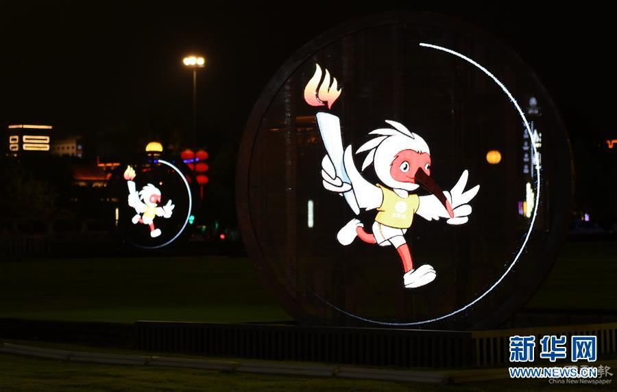 新華社西安8月2日電(記者姚友明)第十四屆全運會會徽“禮天玉璧”和吉祥物“秦嶺四寶”2日晚在西安明城墻南門廣場正式亮相。