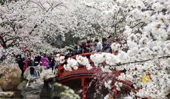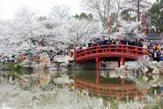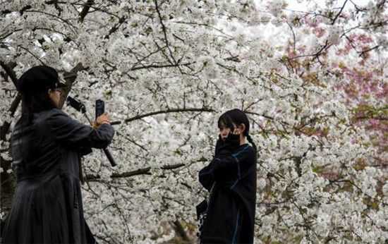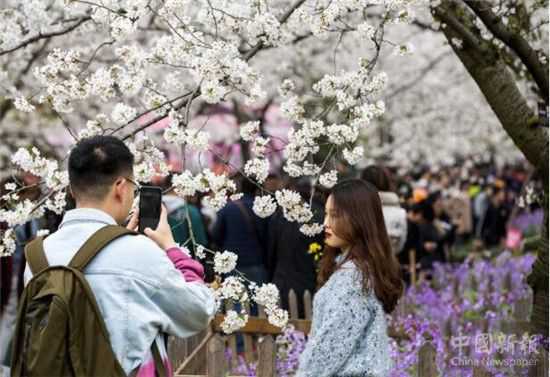 近日,湖北武漢東湖櫻花櫻花已經(jīng)進入盛花期,園內(nèi)游人如織。
