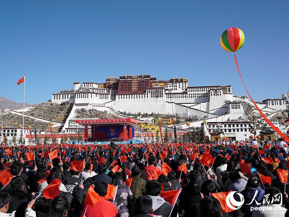 人民網(wǎng)拉薩3月28日電 (王子侯 皇甫萬里)今日上午10點(diǎn),慶祝西藏民主改革60周年大會(huì)在拉薩布達(dá)拉宮廣場(chǎng)舉行,今天也是西藏百萬農(nóng)奴解放60周年紀(jì)念日,大會(huì)現(xiàn)場(chǎng)有來自西藏自治區(qū)的各族群眾一萬余人。