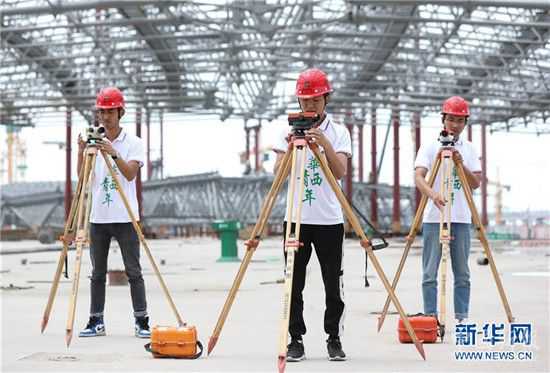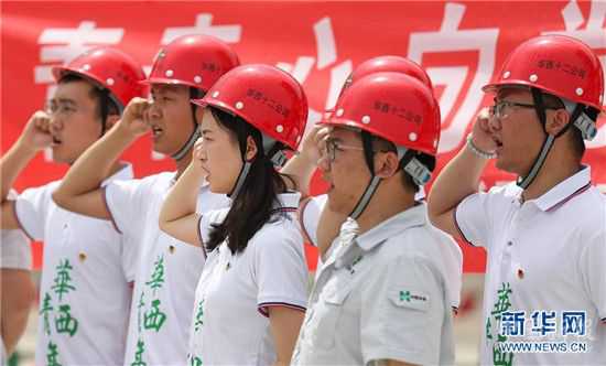 4月29日,在成都天府國(guó)際機(jī)場(chǎng)T2航站樓施工現(xiàn)場(chǎng),青年團(tuán)員重溫入團(tuán)誓詞。當(dāng)日,中國(guó)華西企業(yè)股份有限公司第十二建筑工程公司在四川成都舉行主題活動(dòng),組織百余名青年團(tuán)員以重溫入團(tuán)誓詞、團(tuán)隊(duì)拓展、技能比賽等形式,迎接“五四”青年節(jié)的到來(lái)。 新華社記者 江宏景 攝