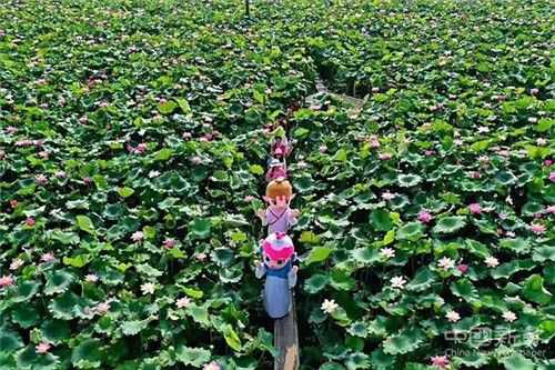 放眼望去,碧綠的荷葉、粉紅的花朵、新鮮的蓮蓬,構(gòu)成了一幅田園美景。