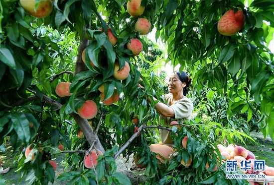 7月30日,在樂亭縣中堡鎮(zhèn)魯家坨村鮮桃種植基地,果農(nóng)在采摘鮮桃。 近年來,河北省樂亭縣充分利用當(dāng)?shù)赝寥?、氣候?yōu)勢,因地制宜發(fā)展鮮桃種植產(chǎn)業(yè),通過推進鮮桃種植擴規(guī)模、延周期、提品質(zhì)、創(chuàng)品牌、增效益,使該項產(chǎn)業(yè)對鄉(xiāng)村經(jīng)濟的貢獻率不斷提升,成為增加農(nóng)民收入、促進鄉(xiāng)村振興的特色產(chǎn)業(yè)之一。據(jù)介紹,目前該縣優(yōu)質(zhì)鮮桃種植面積達到9萬畝,年產(chǎn)量27萬噸。 新華社記者 楊世堯 攝