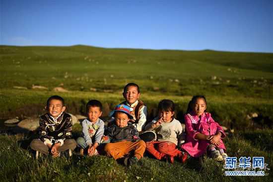 小朋友們一起在智和美草原上合影(7月31日攝)。