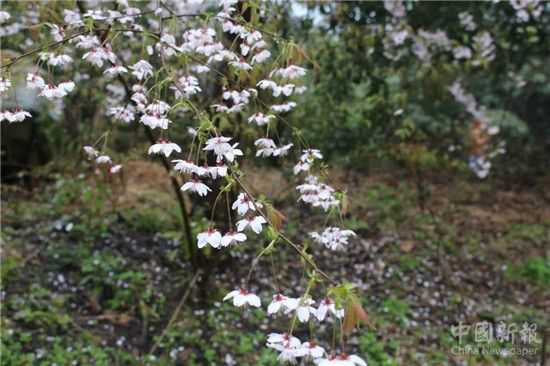 同伴輕聲告訴我,山櫻花生命短暫,積聚一年能量,花開僅四至十天,隨之凋零。櫻花最美在一瞬,紅瘦紅落,吐出新綠。雖知天意使然,但我仍有幾分惋惜。