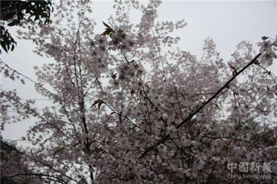 或許是櫻花品種不同,這里的櫻花是粉白色的,而不是像魯迅先生所寫的“緋紅”,看來(lái)陸游所說(shuō)的“絕知此事要躬行”很有道理。龍?jiān)春臋鸦ǘ涫俏迤字型阜鄣膯螌踊ò?,嬌嫩的花蕊帶著幾分柔軟的黃,散發(fā)出絲絲縷縷的花香,浸染在雨后的空氣里。櫻花或盛開,或含羞待放,或緊密相挨,或傲然獨(dú)立。一朵一朵、一簇一簇綻滿枝頭。陶醉其中,顧盼留戀,起伏的山峰,櫻花深情款款。
