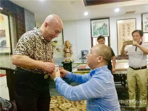 在媒體等各界人士見證下,劉志勇心懷忐忑的向心中曾遙不可及的倪老師敬獻了拜師茶。