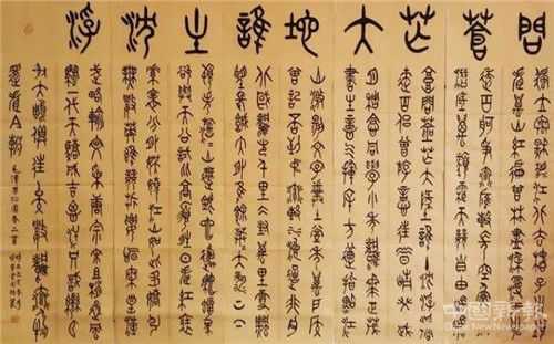 周強(qiáng)書法以篆書為主,諸體兼修,書寫的作品使人獲得雙重的美感享受。小篆用筆遒婉流暢,體勢頎長,結(jié)字工整規(guī)范。大篆具有遒勁凝重的風(fēng)格。