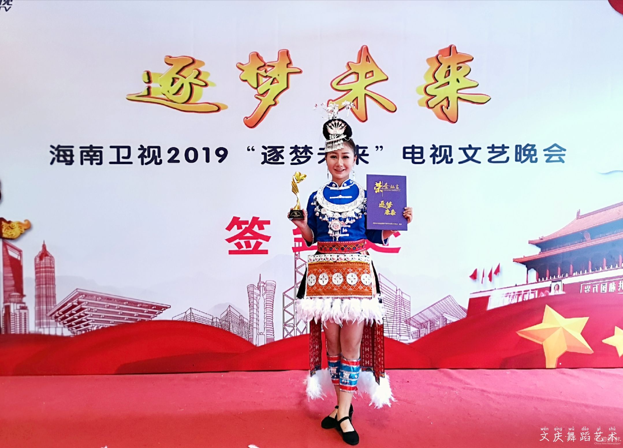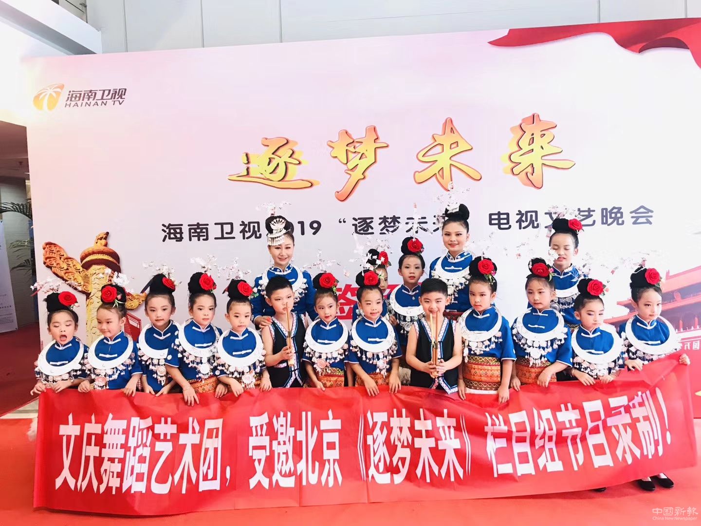 本次活動由海南衛(wèi)視主辦,北京青少年藝術(shù)培訓(xùn)交流促進(jìn)會、逐夢未來慶祝建國七十周年組委會、《孝藝天下》弘揚(yáng)優(yōu)秀傳統(tǒng)文化欄目組聯(lián)合錄制,中央電視臺、河北衛(wèi)視、山東衛(wèi)視、海南衛(wèi)視、山西衛(wèi)視、天津衛(wèi)視、河南衛(wèi)視、寧夏衛(wèi)視、內(nèi)蒙古衛(wèi)視等媒體參加錄制并報道。為慶祝建國70周年,展現(xiàn)傳統(tǒng)文化的和諧美景,由苗族青年舞蹈藝術(shù)家文慶老師帶領(lǐng)的文慶藝術(shù)培訓(xùn)中心學(xué)員黃雅思、任姿燕、楊子力、李佩瑤、楊雪霏、李秋瑤、吳超慧、雷詩揚(yáng)、許若晴、李南毅、楊彥婷、禹華月、李雨萱、鄭嘉莉、羅梓丹、黎心語、王湘蕊、龍凱莉等,她們用民族舞蹈祝福祖國、感恩奉獻(xiàn),為現(xiàn)場及全國的電視觀眾奉獻(xiàn)了一場精彩絕倫的民族舞蹈,禮贊中國夢,歌頌新中國成立七十周年。