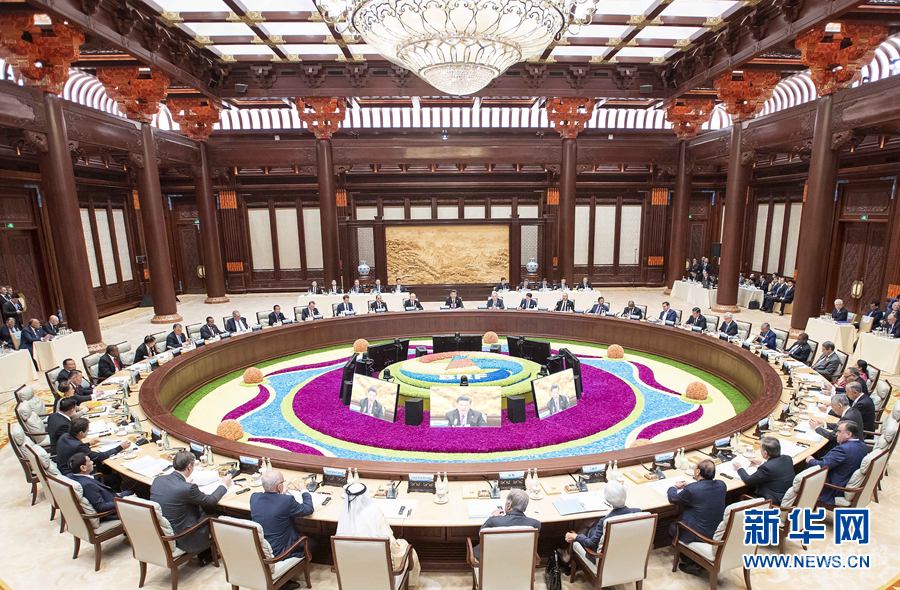 4月27日,第二屆“一帶一路”國際合作高峰論壇在北京雁棲湖國際會議中心舉行圓桌峰會,國家主席習(xí)近平主持會議并致開幕辭?!⌒氯A社記者李濤 攝