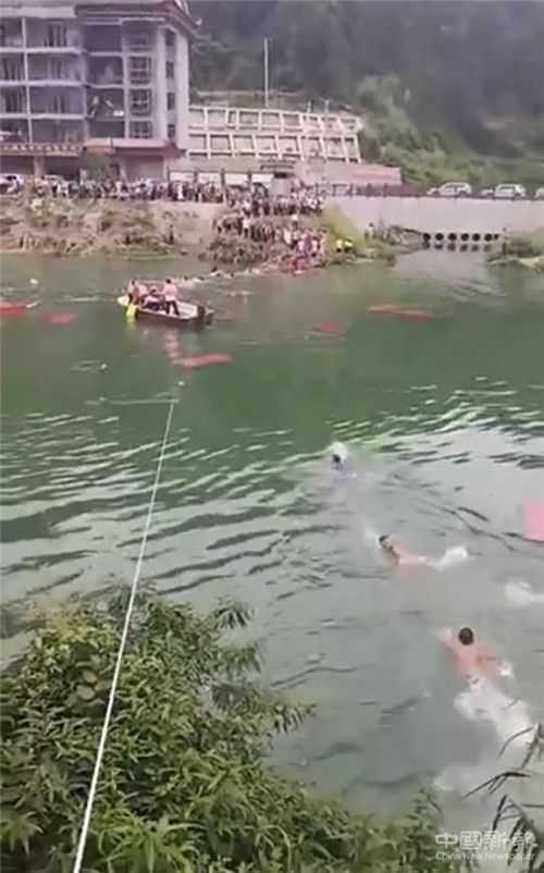 澎湃新聞獲取的事發(fā)現場視頻顯示,多艘船只正在河道里搜救,現場有多人在河道里呼救,船上和岸邊均有人跳入河道救人。