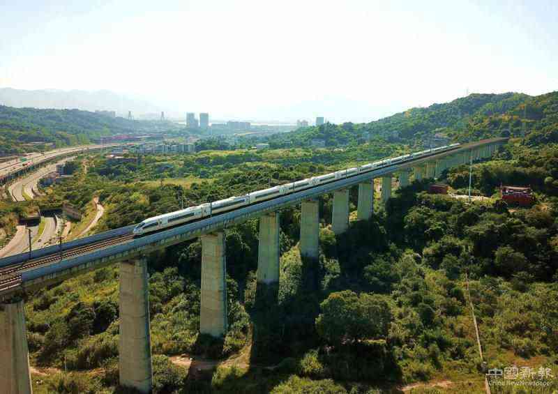 圖:動車組飛馳在福州高鐵線路上/中新社