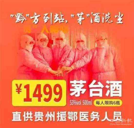 據(jù)發(fā)布的宣傳資料顯示,貴州省所有援湖北醫(yī)務人員只要提供相關資料,經(jīng)核實后即可按1499元/瓶的價格在貴州白酒交易所茅臺酒數(shù)字化直銷平臺購買53度500ml飛天茅臺酒6瓶。貴州白酒交易所將針對援助湖北醫(yī)護人員提供免費存管和物流配送服務。