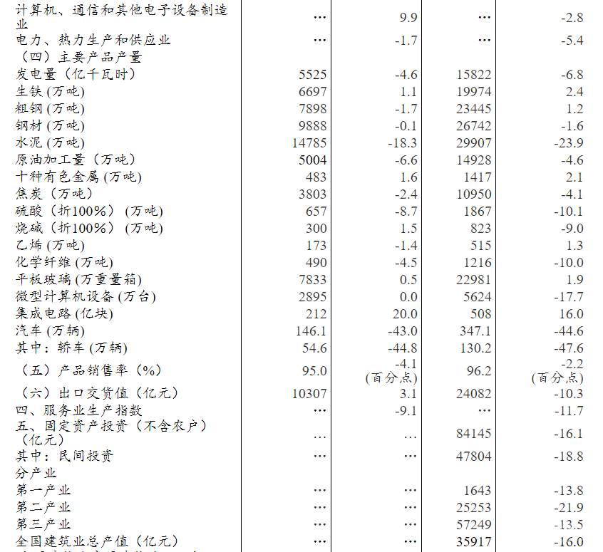 二、工業(yè)生產(chǎn)下降,基礎(chǔ)原材料產(chǎn)業(yè)和高技術(shù)制造業(yè)保持增長(zhǎng)