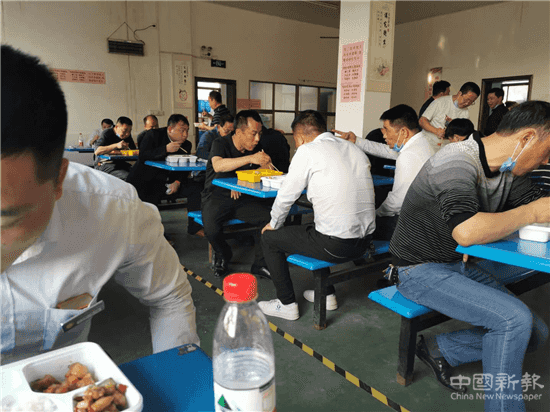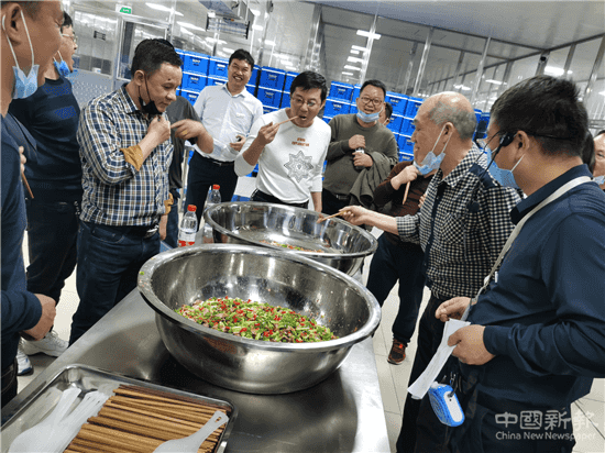 (品嘗智能中央廚房的飯菜,大家贊不絕口。攝影:梁洪英)