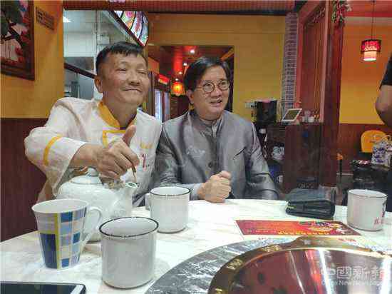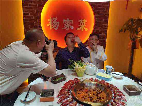 (圖為湖南餐飲文化代言人鄧杰(右一)對"龍蝦火鍋"豎起大拇指)