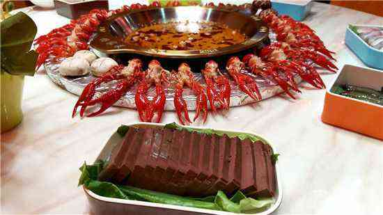 5月15日晚上6時(shí)許,記者有幸和朋友品嘗了“龍蝦火鍋”,銅鑄火鍋,四周擺了25只掐頭去尾的龍蝦,旁邊又?jǐn)[了冬瓜、土豆片、豬肝、鴨腸、魚片、泥鰍和鴨血等火鍋配菜,隨著服務(wù)員將鍋湯倒入,短短一二十秒,火鍋紅油鍋湯便開始沸騰,隨后大家講龍蝦兩三寸大的龍蝦一只只丟人火鍋。