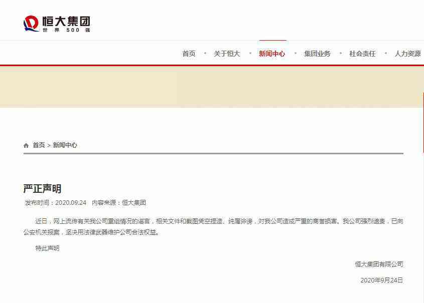 恒大發(fā)布嚴正聲明辟謠!網(wǎng)傳文件純屬捏造
