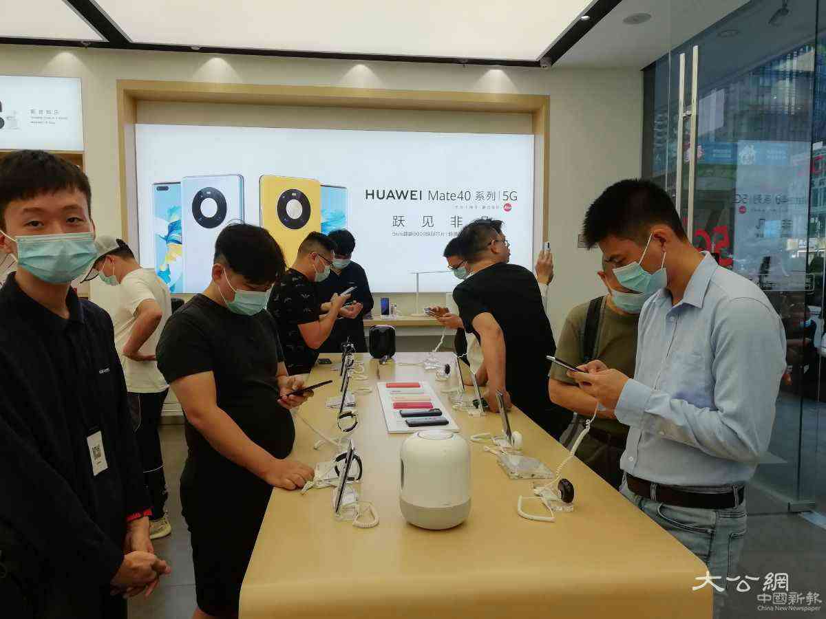 華為Mate40芯片或成絕版,許多消費者紛紛爭相預(yù)訂該款手機 圖為華強北華為手機店消費者在體驗Mate40系列新機 記者 李昌鴻 攝