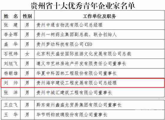 貴州省十大優(yōu)秀青年企業(yè)家表彰 中鎂酒業(yè)總經(jīng)理劉帥登榜