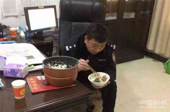 1月27日下午2點(diǎn),祁東縣永昌派出所所長(zhǎng)劉友明在辦公室吃妻子送來(lái)的飯菜