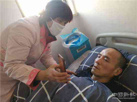 護理員楊開紅幫助王冬發(fā)和女兒視頻電話