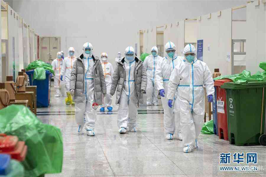 2月5日,醫(yī)護(hù)人員在江漢方艙醫(yī)院內(nèi)。新華社記者 熊琦 攝