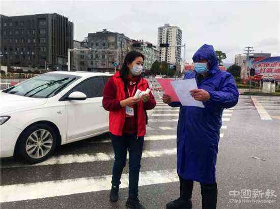塘愛基金會成員向防疫一線人員發(fā)放防疫宣傳單和酒精噴劑