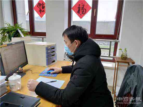 圖為望城區(qū)人社局工作人員正在網(wǎng)上辦公