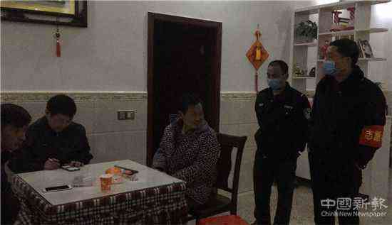 圖為小塘社區(qū)陸小平書記和輔警等上門勸導(dǎo)群眾不要串門