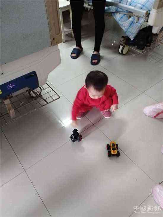 2月13日,在為小兮兮測量生命體征時,小寶貝不但對我們沒有了“敵意”,看見我們過來,就一直天真地沖著我們笑,手舞足蹈,要跟我們玩。這時候,有醫(yī)務(wù)人員給小兮兮送來了玩具手槍和小汽車。