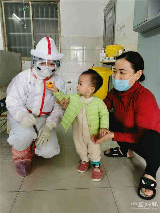 從接診后的交談中,我被這對年輕夫妻滿滿的正能量感動了,我心中的恐懼逐漸煙消云外,一邊和他們一起鼓勁加油,一邊為他們安排好病床,登記入院信息,測生命體征及SPO2……而此時的小兮兮,面對我們這群穿著防護服的阿姨,眼神中充滿了“敵意”!我立即把小兮兮當(dāng)成自己的寶貝,表演滑稽小動作逗著他樂。