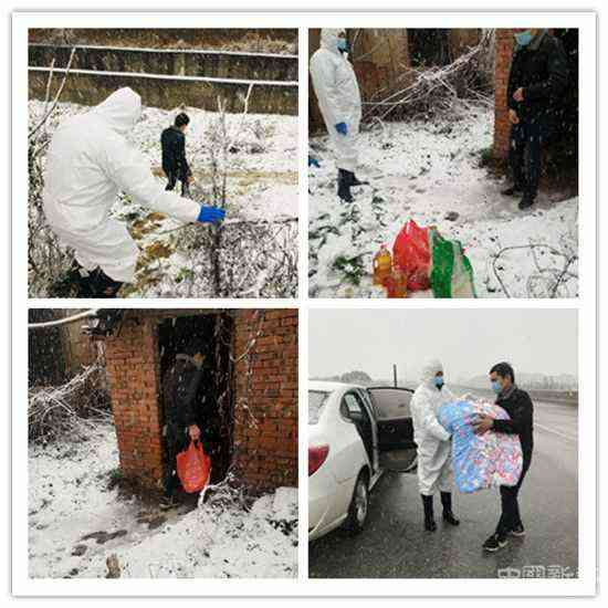 大雪中,青龍社區(qū)黨員到楊某輝暫住的廢棄小屋中查看,并為他送去米、油、鹽、蔬菜、棉衣和棉被.