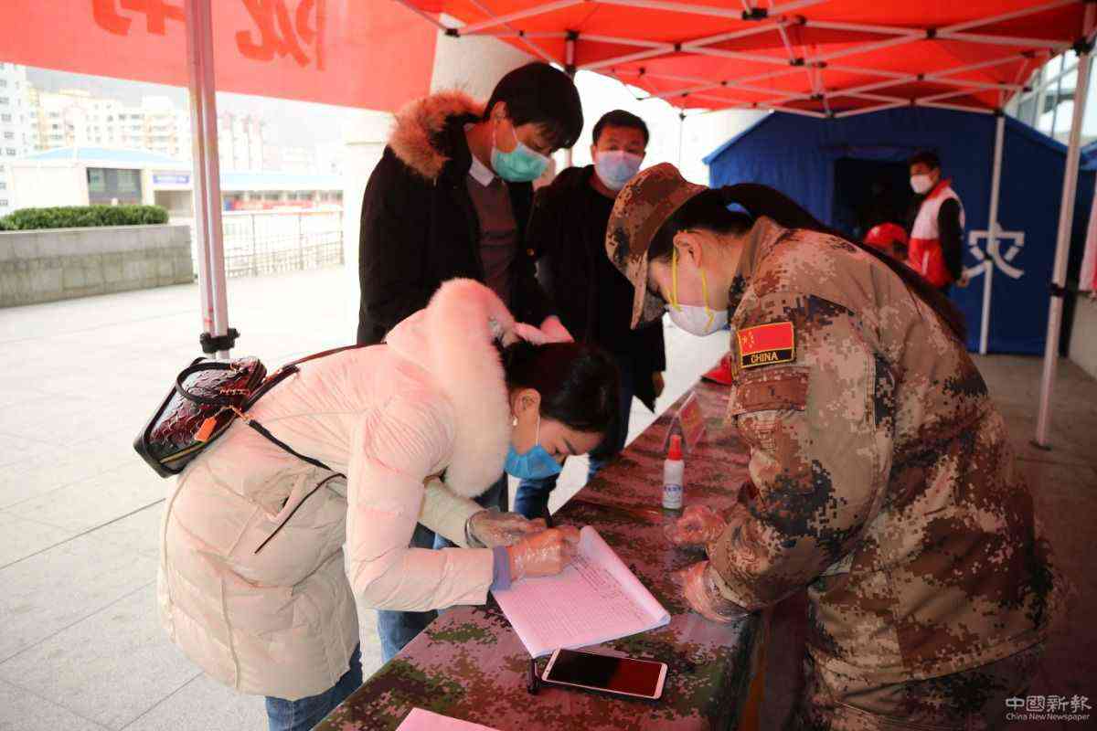 外出人員登記領(lǐng)取口罩