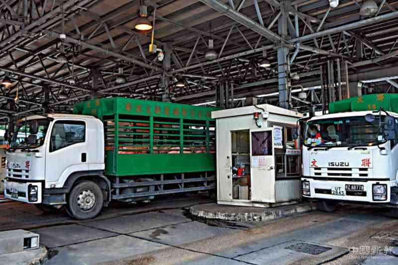 圖:載有貨柜、活豬及活牛的跨境貨車經(jīng)文錦渡管制站進(jìn)入香港\中通社